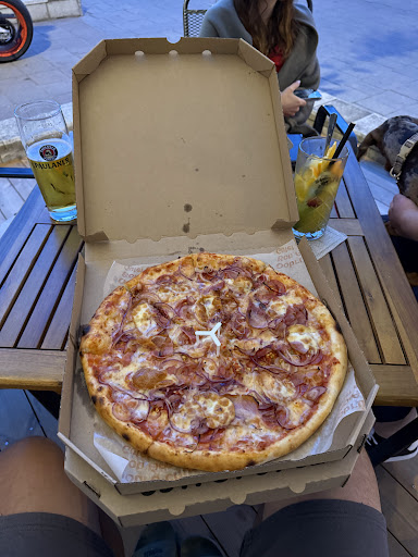 Read moreVzdy som mal s tymto podnikom zle skusenosti, nepamatam si, ci som aj pisal nejaku recenziu..ak aj ano, urcite nie dobru. Uz nech bolo ako bolo, este s mastnou hubou a rukami musim dnes napisat: “Pozor vazeni! Tu sa to niekto naucil sakra dobre robit! Prave som dozul patku, manzelka este prezuva deviatku a sme obaja speachles 🤷 Chut je fantasticka, pizza je tenucka s vyvysenym okrajom, nie je tam kilo a pol syra namliaganeho, cibulu na mojej patke som asi este lepsiu ani nejedol 🤷 Doslova som si spomenul na street pizzu v Padove, ktorej chut som uz nikde inde nezazil a toto ma prenieslo do Talianska za milisekundu. Co Vam poviem. Kupili sme si ju, ze ju zjeme v obyvacke pri vine a pri telke. Zozrali sme ju postojacky...