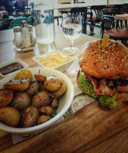 Read moreVeľmi príjemné osvieženie zvolenskej gastro scény. Už dlhšie som chcel navštíviť tento podnik a urobiť si názor a mojou prvou voľbou bol burger, keďže ten vie veľa prezradiť o kuchyni a musím uznať, že sa tu naozaj snažia. Domáci coleslaw, domáce dresingy, burger žemľa na mieru, poctivé ingrediencie a kvalitné mäso. Čo ma vie vždy sklamať keď sa k dobrému burgru podávajú polotovarové hranolky, no dali sa objednať opekané baby zemiaky a tie boli fantastické. Voňavé, chrumkavé, dobre ochutené. Tie sa mi veľmi páčili. Tiež by sa mi k burgru hodil steakový príbor, nie bežný lebo sa burger horšie kraja inak nie je veľmi čo vytknúť. Akurát by som menej prepekal mäso lebo bolo urobené well done do sucha a treba nechať tomu mäsu vlastnú šťavu na čo postupne prichádzajú aj burgrarne v BB a snažia sa ísť tou cestou médium. Pekne nakombinované komponenty v burgri, skvelo urobená karamelizovaná cibuľka. Síce si myslím, že listový šalát v burgri je už prežitok a burger sa kvôli tomu šmýka v žemlí a spodok je spotený, ale to je len moja preferencia, že sa mi to tam nehodí. Milá obsluha, všade bolo čisto, takže celková spokojnosť. Ceny sú myslím v pomere ku kvalite v poriadku, možno trochu vyššie na zvolenské pomery, ale je rok 2024, tak za kvalitu si treba priplatiť. Myslím, že keď dáte tomuto podniku šancu budete si vedieť vybrať a stráviť tu príjemné chvíle či už s dobrým jedlom alebo pitím. Osobne som zvedavý ešte na domáce čipsy, tak sa teším na...