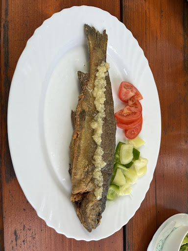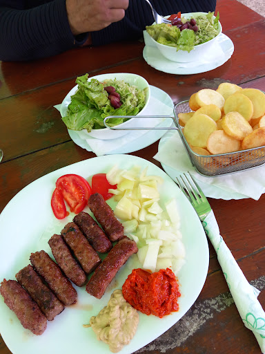 Read moreIn diesem kleinen, gut besuchten Restaurant, umgeben von Fischteichen gibt es keine Speisekarte. Das bedeutet nichts schlechtes, dort hat man sich einfach auf zwei Gerichte spezialisiert, nämlich gebratene Forelle und Cevapcici. Dazu kann man als Beilage grünen Salat und/oder (einen Berg) Pommes bestellen. Zum Nachtisch kann man sich noch eine Cremeschnitte ordern. Forelle und Cevapcici waren sehr gut, jedoch mit etwas Luft nach oben. Aber die Pommes wurden definitiv in altem Fett frittiert (ranziges Fett lässt mich am Engagement und der Hygiene in der Küche zweifeln). Wenn man sich auf wenige Gerichte spezialisiert, dann sollten diese perfekt sein.Der Gastraum an sich ist sehr schlicht. Werde bestimmt wieder kommen und hoffe dann darauf, bessere Pommes zu bekommen. Dann gibt es vielleicht vier...