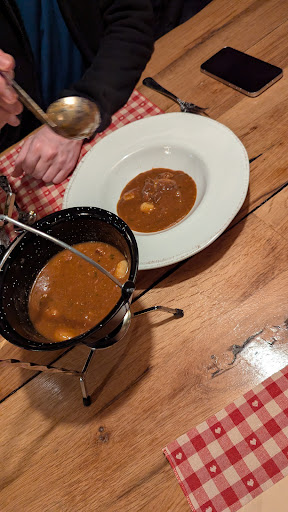 Read moreWriting this after exiting the restaurant. We went here despite the more negative recent reviews because we were hungry, and we regret it. The reviews did not lie, the food is bland and below average. The “alpine vibe” or whatever is a gimmick. The Wiener schnitzel was so oily none of us finished it. The goulash was… disappointingly bland. Honestly I don’t think gnocchi belongs in goulash, it tastes almost pre-digested because it practically overcooks in the goulash, then melts in your mouth in a weird way. Maybe that’s how it’s supposed to be, but not for us. We also had the beef soup because it had a Slovenian flag near it, implying it’s a national/local dish. It was also bland, and we agreed it tasted more like chicken broth with beef and noodles in it. Even if it was beef broth, it was very weak, and we were not sure how it’s a national dish because we eat it regularly and we are not from Slovenia. It was edible, but we left disappointed. It was also not particularly cheap for...