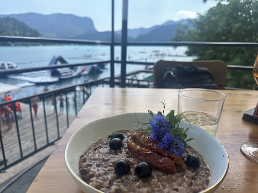 Second time in my life I got that kind of bad experience and treatment in the place, where i leave my money... We stopped during our walk to drink something (around 7pm). We were thinking also about eat smth but we were not sure yet. It was full, so we took last table. Order a beer first, because we even didn't get a meal menu, but ok. After some guests finished, we wanted to change place and sit closer to view, to the lake. But waitress refused to us. But after 5 minutes she agreed for the other guests, to change their places for better one... 🤷♀️ it is nice to know, that you are guest of worst category somehow. It is the most rude practice ever - if you ordered just a drink, sit in the worst place, you are worthless customer for us. If it was just about food - I would order that damn food, you should just give me a menu! But I clearly noticed some other people just with drinks, sitting close to the view...