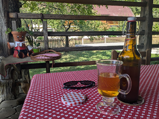 Read moreWhat a wonderful find, a pub with home-brewed beer in a farmhouse hidden away in a mountain village. The host, Monika, runs the place with her mother and daughter. They have several beers on offer although when we visited they had only the ginger and raspberry ales left - so I had to try them both. They were delicious. We went for the plate of local cheeses with bread. Monika told us the story of each cheese and each beer. There are homemade soft drinks, too. The place has a rustic charm and, after you finish your meal the hosts invite you into their old house which, although looks fairly modern on the outside, dates back to 1774. There is the original black kitchen, so called because of a lot of smoking of food goes on in there. Then there is the white kitchen which is a traditional Slovenian kitchen were grandma was doing the dishes and showing off some of her amazing embroidery. This is such a wonderful place that it is well worth making the effort to walk the short 15 mins diversion from Lake Bled to step back in time and be treated to amazing food and drinks. It is not expensive but you need to have cash with you. They don't take...