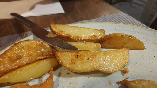 I wish I could give this place 0 stars. I've not eaten such a bad dish in ages. It all started with the male waiter who was unfriendly, didn't guide us to our table and just dropped the menu's on the table. The menu did look good so all was forgotten. During our order the waiter didn't ask if I wanted anything to drink, which is pretty unsual as my friend did get a drink. All fine, that can happen, but with the attitude it was already very annoying. We ordered some soup and a schnitzel, which only had the option chicken as the veal was not available. I asked for fries instead of the baked potatoes for my schnitzel. After our order the menu's were directly passed to our neighbors without any corona cleaning. The soup was served very fast and the Mushrooms Soup smelled and tasted a bit like rotten meat, but it was reasonable. In the mean time I had to ask for a drink. After this we got the schnitzel served. It was a mess, there were fries on my plate for 6 people and the "baked" (read fried) potatoes were soaked in grease (I could do my hair with it, see picture). The schnitzel was dry and very tasteless. It was awful. We finished half our plate and wanted to go home. After 20 minutes of waiting for someone to come to us we desided to walk to the bar and pay there. The male waiter shouldn't be doing a job like this if you can't satify your customer even a little. Now 1 hour later our bellies are hurting because of the awful food. Adding to this we had to pay 45 euro's for this discusting meal with disgusting service. Never ever go...