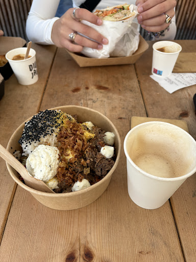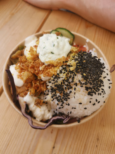 The food was tasty, but a little under-seasoned and bland. The hot sauce has fixed this issue. The portions were fine for a light lunch, and the street-food vibe was relaxed and cool. Price could have been lower, but overall OK experience. EDIT: My response to the owner: I ordered a standard chicken bowl with no modifications, which contained veggies at the bottom, so perhaps you confused me with another customer. Veggies were indeed the only flavoursome ingredient of the dish, the remaining components could do with improvements - for example I would suggest you fry chicken pieces in spicy seasoning, for example piri-piri, instead of providing the plain, steamed/boiled?, pale looking meat. My review was honest, fair and kind, your cheeky reply was uncalled for. I wish you...