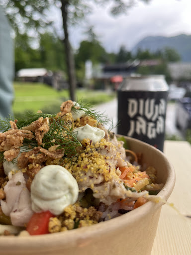 Read moreI genuinely had the most incredible beef bowl here, and the location and atmosphere were just an extra perk on top of the amazing food. I loved being able to sit out in the open with the mountains as a beautiful backdrop. The beef was insanely flavorful and the combination of the rice, cheese, and veggies was very thought through and soooo delicious. My friends also really enjoyed their sandwiches. The price was also very very reasonable considering the quality and the amount of food you get. Overall this place was incredible and if I’m ever in Slovenia again I will 100% be back here....