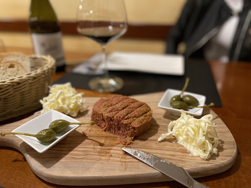 Poco da dire su questo posto, molto ma molto bene. (leggi più sotto per aggiornamento recensione, la seconda volta che sono stato è stato un mezzo Disastro). Innanzitutto la location che veramente gode di una vista mozzafiato tra i colli italiani e colli sloveni, il locale si trova oltre al confine di Cormons nel territorio sloveno e quindi beneficia dei suoi ottimi prezzi come da tradizione slovena. Il locale ha una terrazza e permette di cenare o pranzare osservando il bellissimo panorama esterno dei Colli. Il personale veloce simpatico e reattivo come da tradizione slovena. Ma veniamo al cibo, io personalmente ho preso un antipasto di tartara per due persone e ho trovato la tartara effettivamente molto buona mentre il contorno non era il massimo, in altri locali ho trovato più verdure sott'olio ma va bene così. Di secondo poi ho preso il filetto di manzo cottura media e poco da dire era molto buono, ottimo anche contorno di patate al forno e verdure grigliate, veramente molto bene. E poi come rinunciare al dolce per eccellenza sloveno le famose palacinke alla nutella? Sono veramente mostruose da solo non le avrei finite, ho mangiato una e l'altra l'ha mangiata mio cugino, erano veramente deliziose. Purtroppo personalmente valuto molto un locale in base alla birra e qua hanno una birra artigianale ma solo bionda non filtrata che io ho provato a prendere ma non l'ho trovata buona, io personalmente amo la birra scura la birra rossa, ma ovviamente questi sono gusti. I prezzi come immaginate sono onestissimi come spesso accade in territorio sloveno soprattutto rispetto ai prezzi italiani a cui siamo abituati. Insomma una gran bella sorpresa un posto in cui tornerò sicuramente .aggiungo le foto per farvi vedere la bontà dei piatti e la loro cura. Super.