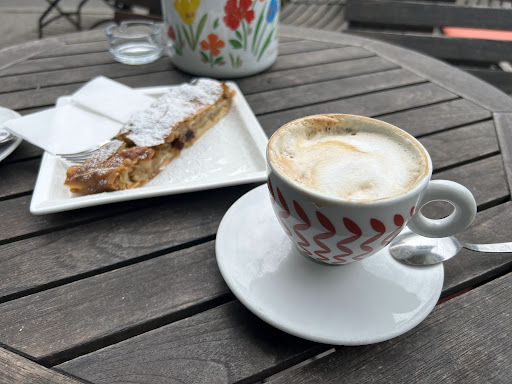Read moreOn a rainy biking day we stopped in for a cappuccino to warm us up before continuing the rest of our ride. The cappuccino was great as was a slice of warmed apple strudel. The waitress spoke perfect English and was very kind and helpful. I am also so impressed at how many languages Europeans speak and are always there to assist those of us who speak 1 language. It makes for a nice...