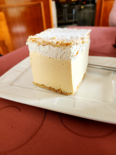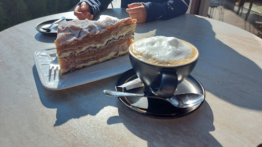 I have to say I liked neither the coffee nor the cake. The cake and it is a local specialty; however, I have to let you know what it is like. It is not the cake normally you would have in mind. It's a meal rather than dessert i would say. The dough layers are thick like pasta sheets, the cake is not really sweet and you have to like poppy seeds (also it's a bit dry and sandy texture of the poppy seeds layers). Maybe they make the perfect local cake, but it was certainly not my cake. I couldn't have half of it, unfortunately. My husband (vegan) doesn't want to wast it, so i tried my best to have the cream layers and he ate the rest. He also didn't enjoy it. My cappuccino was awful, the worsti had in years (compatible with instant or evenworse) . But my husband said his...