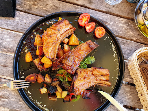 Had slow cooked pork ribs on young spinach bed with some roasted potatoes with some house red wine (Refošk / Vina Koper) - both excellent. Pizza (Margarita Burratina) was also great, while a mushroom stew was good, but not totally awsome like the two other dishes.