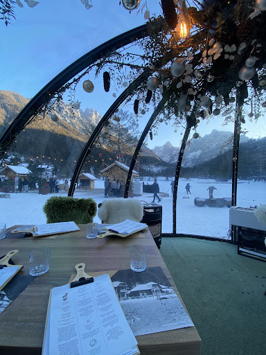 Read moreWe reserved igloo, which has two tables inside so if there are less than 8 people you will be seated with some other guests, atmosphere is nice, with good views. But the food… very expensive for what it is…. Trout tartare was quite good but except this everything else was bland, prosciutto and cheese was nothing special, chicken was basic and plating boring if it wasnt for some random flowers which made it a little bit more colourful but kitschy, beef was just normal with potatoes, i was expecting very good burger for the price of 17 euros and its name (something like burger for the brave) but the waiter did not ask me how would i like the meat to be prepared, this was the first red flag, and from there it only went downhill, burger was dry (both the bread and meat which was well well done)and there was no sauce inside. For dessert we had panacota and pancakes which both were average. So if it wasnt for the location it would be terrible. For this price i would...
