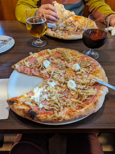 My husband and I are here after a very long couple of days in the mountains - and let me tell you that the pizza at Pizzeria Kot absolutely hit the spot! We've found since moving to Europe that we really miss a good American style pizza, which to us is characterised by a nice balance of sweet and salty in the sauce, a good ratio of cheese, and a firm crust. The pizzas we ordered here hit all of those marks, and we could not stop raving about how good it was. The portion size was also very generous. If we hadn't been fresh off the trail and starving, it may have been more reasonable for us to actually split a pizza! Would absolutely come again. Friendly service and...