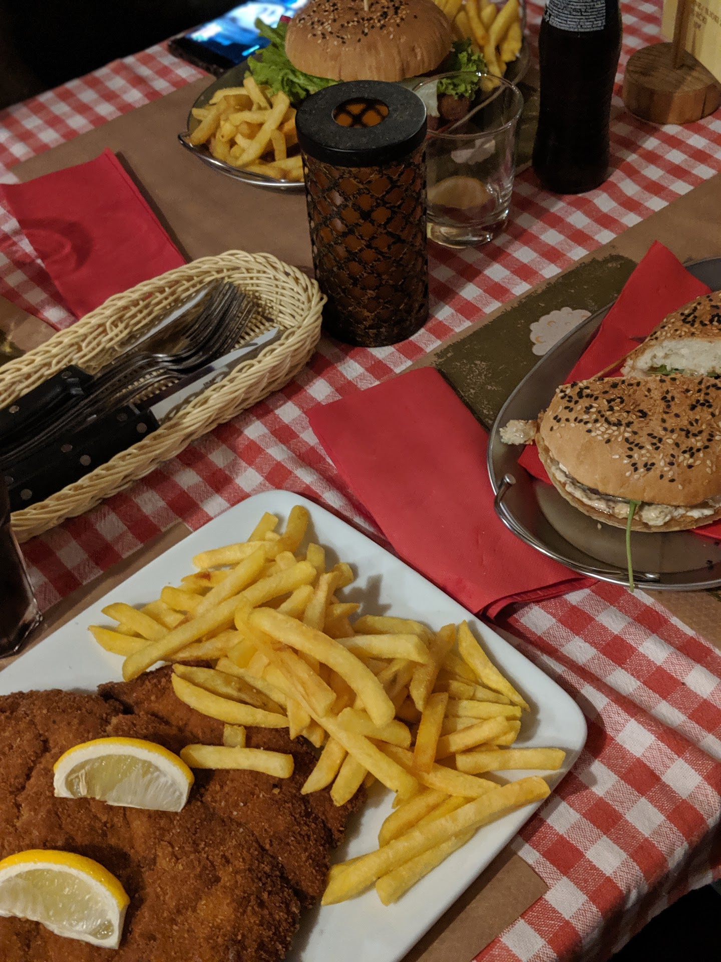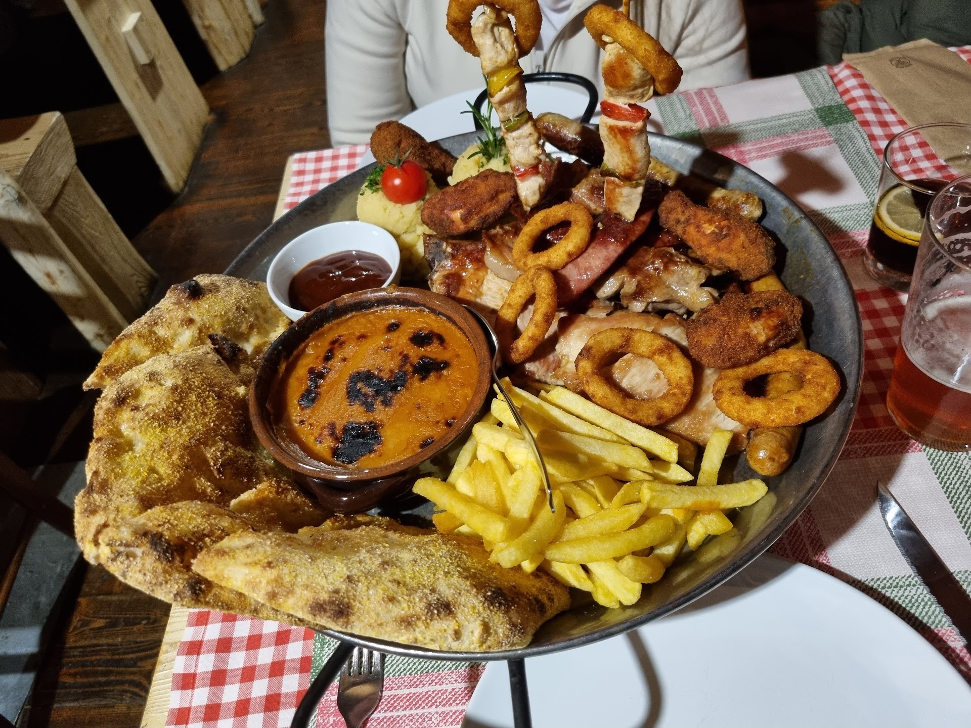 The food was delicious, the local beer was also very nice! Cosy feeling with the log fire on in the wooden cabin!
