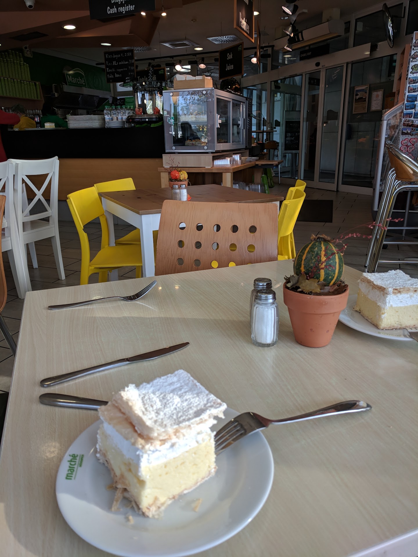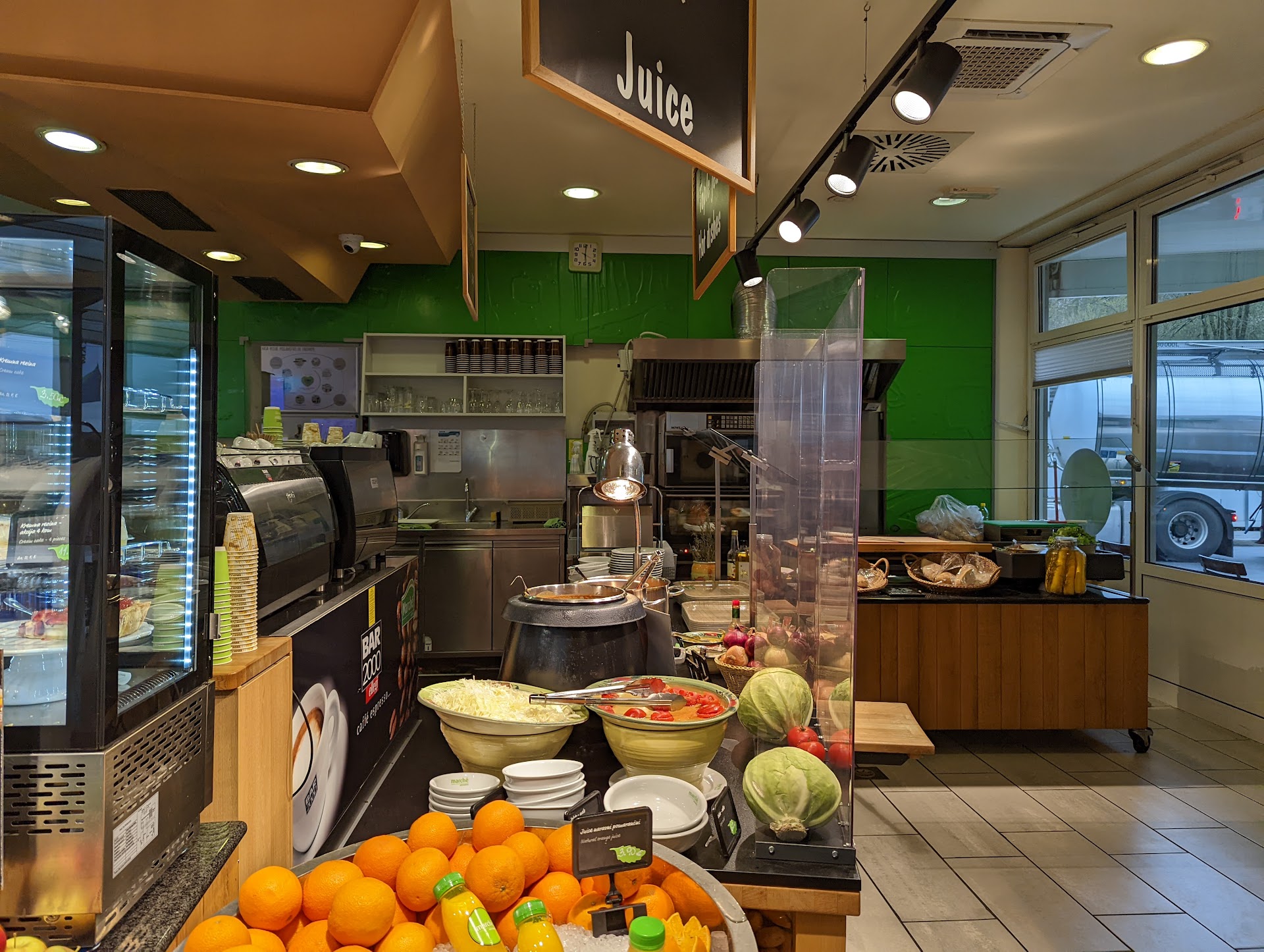 Very slow, therefore long line, few types of food: 2 soup, 1 sausage and few sandwiches, thats the menu…too expensive for its portions, and the cashier was a bit rude. I wouldn’t recommend it much. And also the coffee was below...