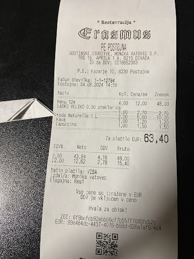 Read moreDidn't stay there, soo... I don't know what the rooms are like. But god damn the food is delicious, cheap. Normal portions, which is a rare sight to see. Since every restaurant or bar is shrinking portions and raising prices through the roof. Last saturday we went to a restaurant and ordered the usual, the portions were child sized, get 4 main dishes with salads and drinks. Heart attack at the end when they bring the 80-85€ tab for that garbage. And at Erasmus we had 4 soups, 4 main dishes, salad, dessert, maybe 7 or 8 drinks. And it was below 50€. Maybe less, the food tasted better than any restaurant in the area. The portions were normal, maybe even a bit big. But that is no problem. Insane experience. Left happy, full and definitely returning any...