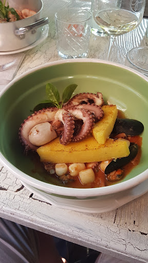 Nice place, with good recommendation on food for first timers. This is a restaurant with higher standard than average in Slovenia (at least the prices are). That is what they want to show but aren't doing. We were five and 2 of us got food 5 minutes after the others. My order was mixed up with someone else and that is not the bad part. The waiter rushed after couple of minutes to me and stared into me directly for about 1 min and asked if I already started eating, that he mixed plates with someone else and that he would change it (in corona times) so he would exchange food under two strangers not knowing if eather of us tried their food and contaminated it. Going forward, plates were setup nicely (picture) but one of two mussels was closed so not safe for eating. Someone not knowing that would need to visit a doctor next day. That is very bad for a plate of this price range. And for house wine - maybe a bad year..