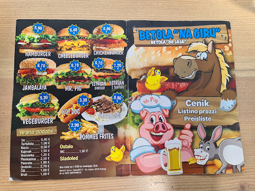 The place is by the road. It has gorgeous view and very very tasty burgers!! One of the best i tried in Slovenia if not even the best one! The buns are perfect -fresh, big and crispy, and the burger all together was juicy and super tasty. Fries also good. Prices are reasonable. The lady that served us was very friendly!