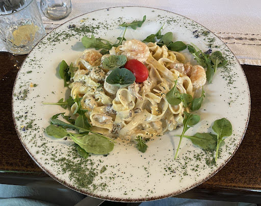 Read morePeccato non fosse disponibile la carne d'orso. Praticamente c'ero andato apposta dopo aver letto i commenti entusiastici qui su TripAdvisor. Ad ogni modo non è andata male. Come primo ho scelto le tagliatelle con la grattata di tartufo nero.Un pelo insipide ma nel complesso discrete. Buona invece la costata di vitello presa come secondo, accompagnata da un'abbondante porzione di gustose patate fritte (passate in padella col burro, a giudicare dal gusto). Buona anche la mezza pagnotta di pane messa in tavola. Per finire un discreto tiramisù, caffè, ed un bicchierino di Pelincovac (offertomi dalla casa). Da bere ho preso del Refosco sfuso di cui ne ho bevuto circa la metà (da evitare... meglio optare per una buona bottiglia... ma ero da solo e dovevo guidare), ed una bottiglia d'acqua. Spesa 41 euro, in linea coi la media dei prezzi in Italia per ristoranti della stessa categoria. Personale gentile e perfettamente in grado di parlare italiano. Locale spazioso dotato anche di posti all'aperto. Assolutamente da visitare la vicina chiesa affrescata...