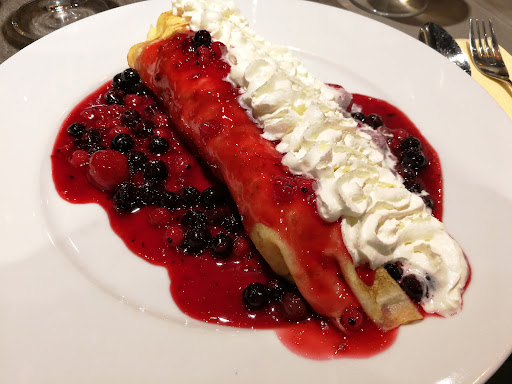 We've been to Nimis for the first time in August '23 and I think it's going to be the first of many enjoyable meals. They have a huge menu; it is actually heavy too. The portions are veeeery generous. This is also reflected in the price, however, just know that you will get the worth of however much you pay for the plate. We were thinking about getting the Fiorentina steak. unfortunately it was out of stock, but at least we learned that the minimum order is about 750g. If you have a small stomach like mine be careful about not pushing yourself too hard to finish what's on the plate, you have to consider the desert. They also have more than a few desserts in the menu, but I guess the most famous and fancy one is the Nimis Palacinke which is a huge crepe (palacinke) filled with a fluffy cream. I actually didn't realize that there was cream in it from the photos on here, it was a nice surprise. And the whole thing is covered with red berry sauce, warm red berry sauce. Sharing one of these with 4 other people was the right choice after all the meat we had, but I must say you can also go there to have the palacinke in case of dessert emergencies. Next time I will get...