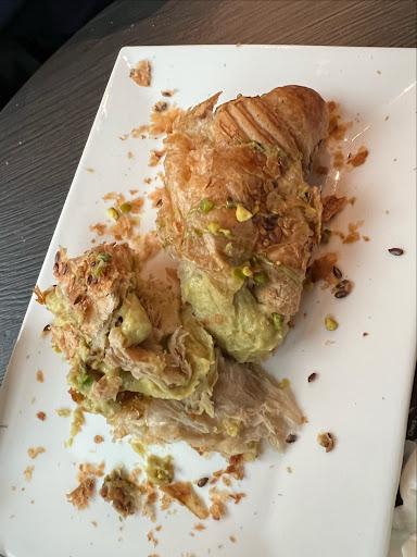 The most expensive croissant in Ljubljana at 4,30 euros and probably one of the worst as well. The pistacio cream was ice cold and only in the middle and not spread uniformly while the croissant itself was cold and dry. When we told the waiter about this, he was polite but said he has nothing to do with it. Perhaps some training for the waiters here would be good since if you charge so much, waiters should be more professional and know how to deal with this situation. Thr waiter could have apologized and asked the kitchen what went wrong. He told us that the croissant was made fresh. Well, it tasted old, dry and like it was taken out of a freezer. The worst- couldn’t eat it and still charged for it. Premium places don’t do that. The cafe itself has gone past its good days and needs renovation as currently tables and chairs are lined up like a cafeteria in a production company. Prices went up but quality and service of food and beverages went down. Hiring students to do waiting of tables is fine but you can’t have shoddy service and food and then charge...