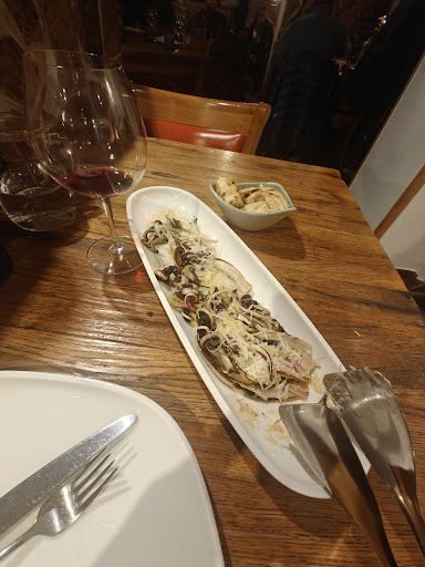 Read moreThe kind of place I love. I got there at about 7.30 on a Monday night in November without a reservation and managed to get the last available seat. Staff were super-friendly, and combined professionalism with a good sense of fun and a genuine desire for their customers to have a great experience. I had the raw fillet steak to start, which was delicious albeit very much focused on quality rather than quantity. It was accompanied by a small loaf of bread which they dampen and put on the barbecue. Sounds a bit odd but it was very tasty and was great to mop up the oils and Parmesan left from the raw fillet. For my main course I went for the special Colt steak. Not something I will be mentioning to my vegetarian daughter, and my first time eating horse, but it was really delicious. Also had a bottle of local wine, recommended by the waitress, which was a perfect match. Bill came to 66 Euros, which isn't the cheapest in Ljubljana, but you'd pay way more in London or Paris. If I go back to Ljubljana with friends or family I'll definitely go...