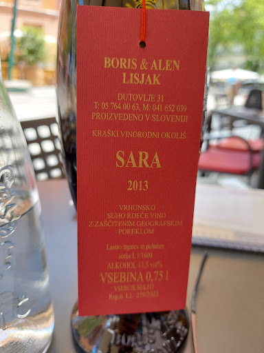 Read moreReviews indicated this wine/tapas bar had an excellent selection of wines by the glass. They were spot on and the waiter recommended a couple of dry, bold reds from Slovenia. One was a cab/merlot blend the other a cab. Both were excellent though I chose to have an additional glass of the cab. I had the local specialty Kranjska sausage with mustard and horseradish. It was not so impressive as our guide said it was. This is no fault of the restaurant, I just think I would select a different dish next time. They have a varied and lengthy menu. I have been impressed with the Croatian and Slovenian red wines on this trip. Outdoor seating on this lovely...