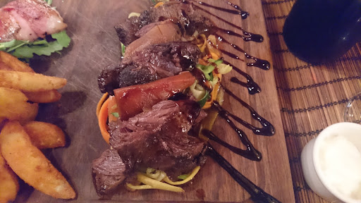 The pork loin wrapped in bacon that I had for my main dish was absolutely delicious! Served with cheese, potatoes, garlic sauce, sour cream and yogurt sauce, the pork was juicy and the saltiness of the bacon was perfect against the cool, creaminess of the sauces.