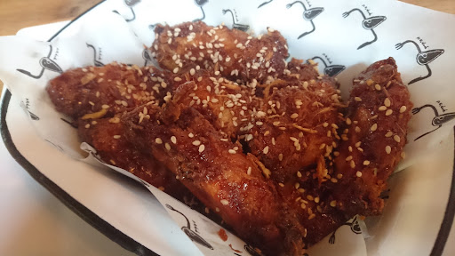 Lunch with my friend began with an order of Asian-style chicken wings, which are cooked twice and marinated in their own sticky sweet Asian sauce. Crispy on the outside, juicy on the inside, and the sauce was thick enough to stick to the wings but not overpower them. Delicious.