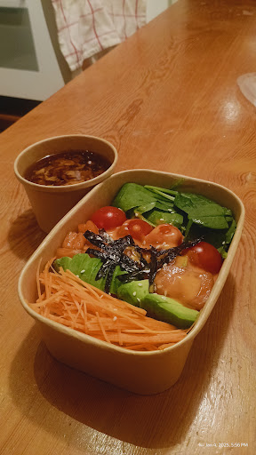 Read moreI have only been here once so please note this might not be standard practice. I ordered a vegetarian meal and had to wait for them to make the food for the people in front of me. It was busy but this was lunch hour so it was expected. As I waited I noticed the person preparing the food never changed their gloves or washed hands while they were handling salmon, tuna, meat, tofu, veggies, nuts, etc. This is a huge red flag for me and I asked for a refund and didn’t wait...