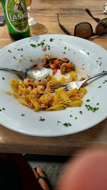 We were here for a lunch. The atmosphere and the look of the restaurant is nice, however, the staff doesn't speak English, which makes it hard to communicate. Luckily, we had some Slovenians with us, who were able to translate and order. Nonetheless, the waiter was friendly and gave his best. The food was average - meat meals with potatoes were good, but if you choose vegan or vegetarian or no gluten option, be prepared for some surprises (e g. getting tofu in no gluten meal). The food was overall, for our taste, too salty. We recommend the raw cake with forest fruits, but don't waste your time trying the coconut cream (it was...