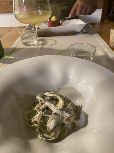 Read moreVia de michelingids kwamen we hier terecht. Enthousiaste bediening. Gebouw gedateerd, toiletten schoon, maar oud. Het raampje van de toiletten staat open en komt uit op de keuken. Maar goed, we kwamen om te eten. Voor wie geen vlees wil eten, weinig keuze qua voorgerechten, hoofdgerechten uitsluitend vlees. We namen biefstuk tartaar, prima vlees veel te pikante saus erbij; en in zuur ingelegde ansjovis. Was net kleine rolmops. Tweede gang: deegrol met daarin een soort kaas. Enorme hap met daarbij een basilicum saus. Zeer matig qua uitvoering. Hoofdgerecht, hert voor tafelgenoot. Perfect gebraden. Daarbij aardappelpuree en verse groenten. Voor mij met kaas gevulde pompoenbloemen in een gefrituurd jasje. 3 bloemetjes en een paprikasaus. Er was geen moeite gedaan hier een hoofdgerecht van te maken. Als toetje hadden we een groot bord kaneelmousse met vijgen en een soort appelstroopsaus erbij. Was best aardig, maar miste balans. Al met al was alles redelijk en verzorgd, toch was het wel een beetje teleurstellend. 5 voorgerechten, 1 hoofdgerecht, 1 dessert, Drie glazen wijn (goed), fles water en kannetje vruchtensap: 138,- afgerekend. Er is geen kaart, de ober vertelt aan tafel wat er in huis is en tijdens de uitleg moet je kiezen...