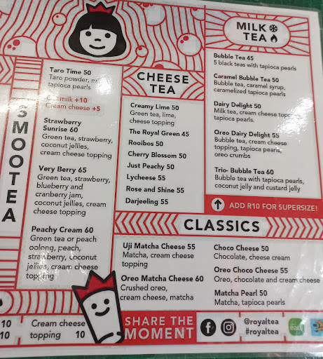 Royal Tea bubble tea shop sells refreshing cold tea with a difference, new to Cape Town as I have had it in Taiwan many years ago. Flavors and ingredient selection caters for all. This tea shop is situated in Cavendish Square, inside The Egg store, a trendy business that sells various companies products, with clothing and health products and trendy food stores. I tried a large matcha tea with bubbles and it was good. I would recommend honey in it. I took the large size as I wanted the reusable cup that came with it, so cool. So much to drink. The strawberry and pine bubble tea was also refreshing. Loved loved loved the service. Those guys working their are friendly and happy to assist if you struggling to decide what to order. Next time I'm trying Taro. Had it before at another store,...