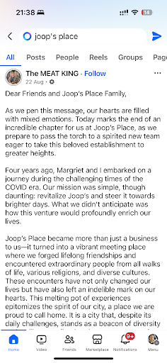 To name one of the bad incidents... We ordered a Coke and it didnt taste like coke (it had an alcohol like smell and taste. We assumed the glass might have been dirty) the hostess comes to our table and very loudly protests that there's nothing wrong with it and tastes fine to her. We quietly asked for a new coke and we did say that we were fine paying for both. I've been to restaurants around the world and I have never been treated so rudely by a hostess. Like I said... could have been an off day. Sorry Joops Place. I hate giving bad reviews but I am genuinely disappointed. Your hostess ruined my husbands birthday.