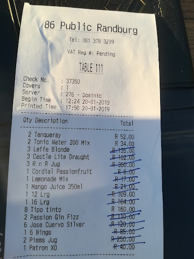 Read moreFood is amazing! Alcohol is reasonably priced, Set up and atmosphere is great. Management is friendly. I just had a terrible experience with one of the waitresses, we had a bill of R 400 but the we had to constantly look for the waitress for things, which in itself wasn't the worst thing, however due to us having to look for her constantly we provided a R 20 tip eventhough we were not obligated (but it's terrible not to tip) . Our waitress looked at the money and said our tip wasn't 10 % and it should increase. I asked if it was mandatory for 10 % she said no but they only get paid in tips so we should give her more. We declined and she was angry. It completely ruined our night which was lovely until then. This was a month back. We used to go every 2nd week as its close to home but now we'll never go back as its ruined our view...