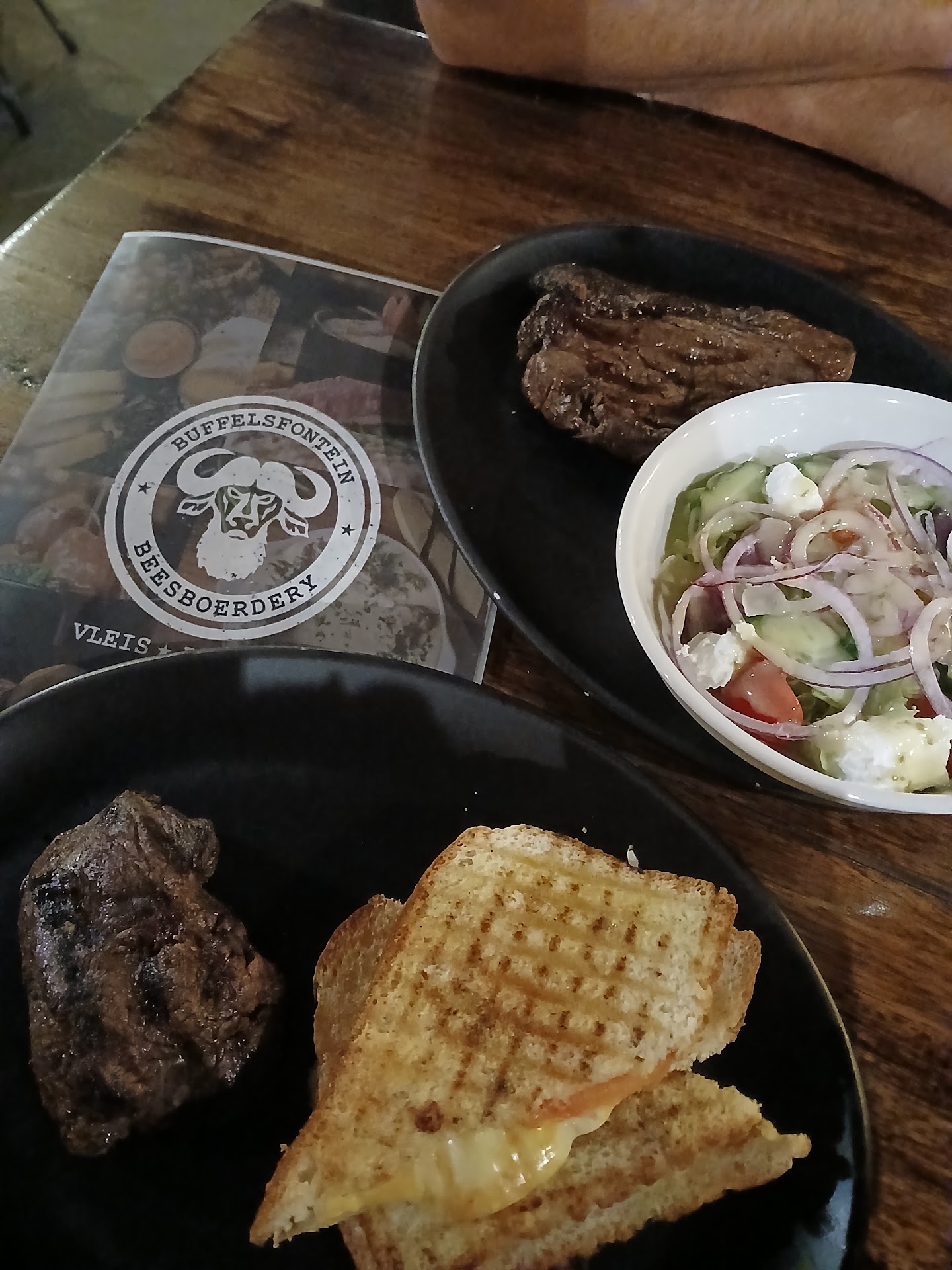 Read moreI took my wife on a "date night" for lunch here while the old folks looked after the kids. We waited about 15 minutes for a table because we had no booking. The place is clean, neat and tidy just the way she likes it. The menu is in Afrikaans so ask your waitress to explain it to you if you do not understand the language. If you like red meat then this is the place for you. However if you want a quick meal you are better off getting an oil soaked piece of chicken from the colonel. Here you are going to wait about 40 - 50 minutes for your food, so relax and order another round. There is no music because people come here for the food and conversation, not the entertainment. The waitresses are friendly and understand the menus well. I ordered a "meat platter for two" and when the waitress turned to my wife, I explained it was for the both of us. I have been on the Weigh Less black list for years and want to slim down a bit. BBB is busy inside. Everyone is engaged in conversation with friends and strangers alike and the atmosphere is warm and inviting. Look around and you will see the largest gathering of bearded guys together except for a Hell's Angels breakfast run. I mean, beard oil is what created this restaurant. The food was great, just the way we liked it. The waitress did not bother us too much. Just enough to make us think she cared. We spent just over two hours there and had a great time. For the success of my "date night", BBB...