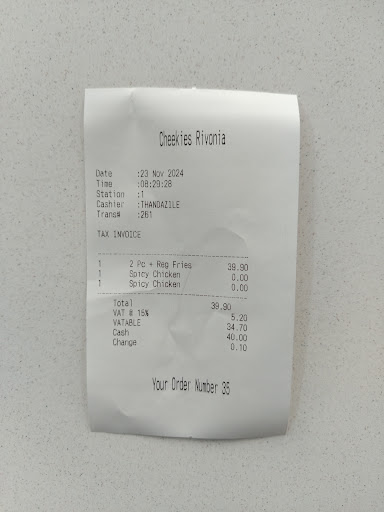 If l could give -1 for the service l would. The cashiers were impatient and rude to us, l would assume it's because of our age since they gave older people a different and proper treatment. They offer sides , being Spicy rice, bread roll, fries and coleslaw. Spicy rice and the bread roll were not available but instead of informing us nicely she was rude about it on some "No we don't have rice " in an unfriendly tone implying that they don't offer them at all. They were acting like they are doing us a favor as if we were getting the food for free. I don't recommend a dine in but Uber eats delivery that you could do just to avoid those ladies. Please train your staff to treat customers like customers and not some...