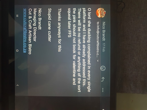 Ā Ā Ā Read moreThis fabulous little Bistro is the gem of Queen Street and undoubtedly right up there with the best Johannesburg has to offer. The food is reasonably priced and consistently excellent, with great care taken on presentation. Lovely little artisan touches elevate the ordinary to the fabulous! The waiters are friendly and attentive. We are regulars at this venue. Besides the great food, we love the ambience (- always the sound of people having a good time), the evolving unique, creative decor and the friendly, welcoming owners. We also love the fact that they support local artists and craftspeople, who regularly host exhibitions at the venue. Their support continues with the artists works being on sale amongst the artwork on display. What a great concept!! It has become a "regular" spot for a lot of the locals, which speaks volumes. May they grow from strength...