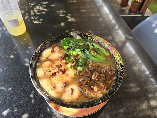 Lovely quaint place. It is the small things that just add up. Google pin took me right to the place, there are no big signs on the building, just a sign on the pavement. Went there for the ramen and left a bubble tea fan. Lovely decor and exterior seating. It is slightly below road level, so still very private. Beef Flank ramen was delicious and a very generous portion. Had a lithci juice tea and it was nice to be asked how sweet to make it, I opted for medium. Juice was perfect for my sweetness liking. After the meal they give slices of oranges to cleanse your pallet, the small touches. I had to order a milk tea for take away, after seeing the rave reviews on Google. I went with the mint and coconut jelly, looked divine and can in nice carry bag designed for cups, the small things. It has pieces of coconut jelly instead of the bubbles, so delicious and perfectly balanced flavour-wise. Will definitely be recommending and soon...