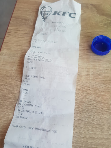 Read moreThey assume everyone has a smart phone and is paying by card, as you can only order via the self service screen inside the KFC. Drive thru queue was very long... The app is slow. When you eventually get your slip, there is nobody to help you. Your number flashes up on a screen then disappears forever. So you stand... And stand.. Eventually you flag down somebody in the back. So you have paid for icecreams with flakes. They have no flakes. And they expect you to have cash change on you, to refund you. And then chicken bucket is put in a bag but has no lid on the bucket.. Never again.... And now I know why the drive thru was so busy.. At least that still works. When i arrived, a lady had ordered via the app at home. My order took about 20 minutes to get sorted out. A bucket of chicken, dunked wings and 2 cones...The poor app lady was still waiting for her order when i...