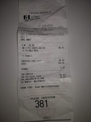 I recently had a disappointing experience with Douglasdale KFC. I contacted customer care and was told to drive to the store to return the meal, which was inconvenient since it was an online order and I used their delivery service.