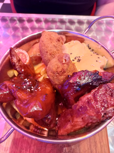 The food was warm and ribs and wings tender and very tasty. However I really didn't like that you put my chips under all my meat, by the time I got to them they were mushy and full of my meat sauce, I personally prefer them crispy and on the side.