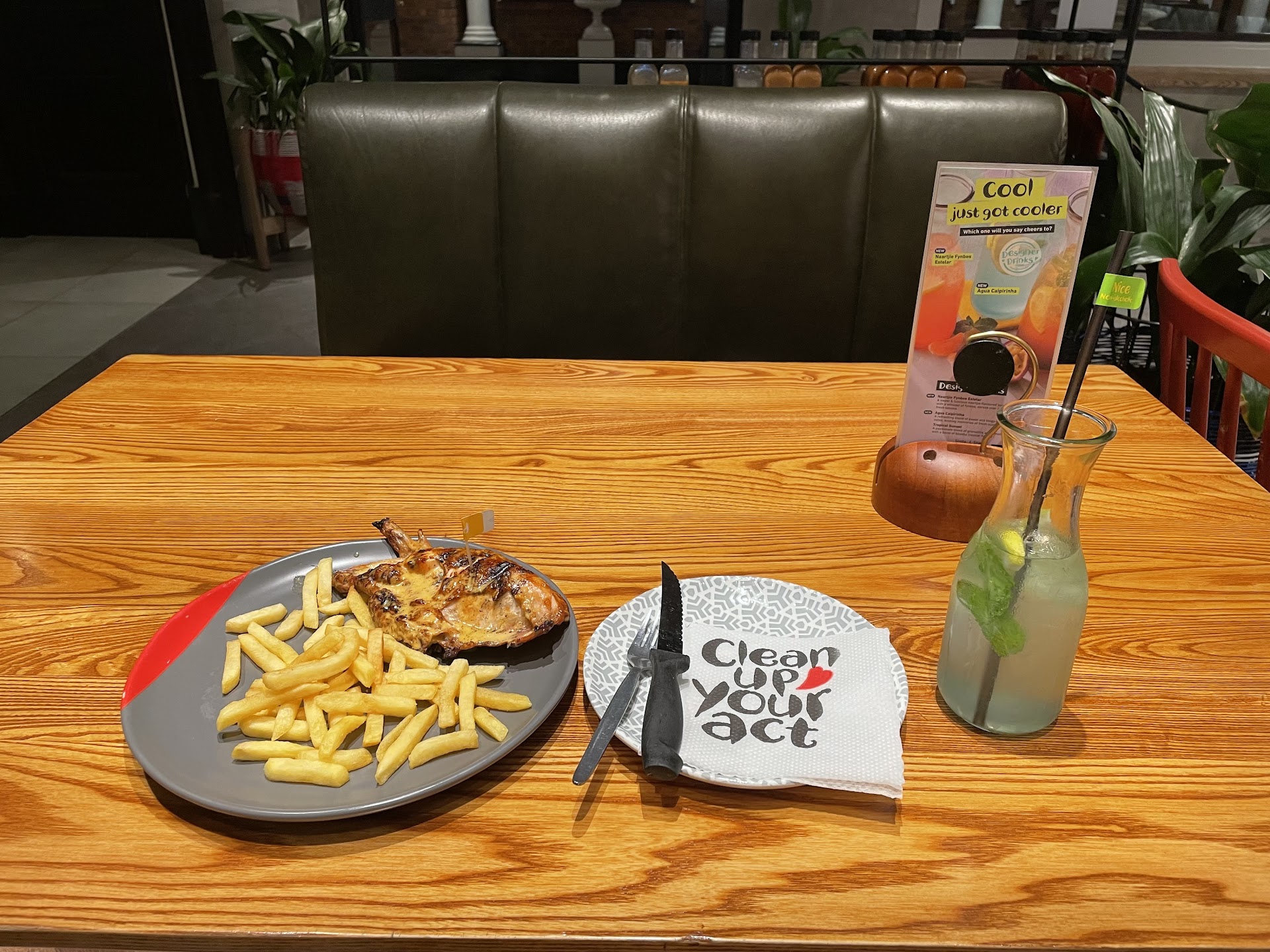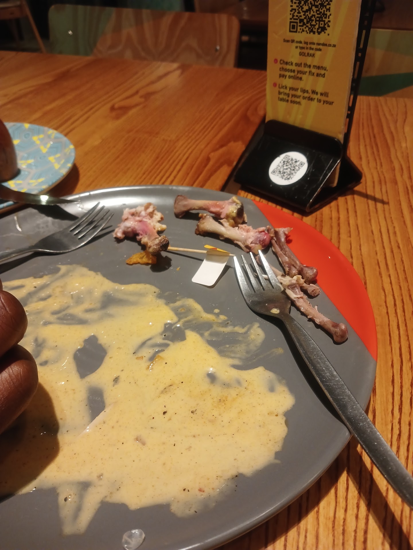 Read moreAfter ordering our food we found a table and sat down. Since my 7year old granddaughter does not eat nandos we took kfc for her. While she was eating the manager appeared and told us she's not allowed to eat there. Very rude and abrupt . Even the waiters are so unfriendly. My baby had to put her food in her bag and carry it out. We ofcourse canceled our order and definitely won't return there. We did go to calistos who welcomed us and even gave my granddaughter a plate to...