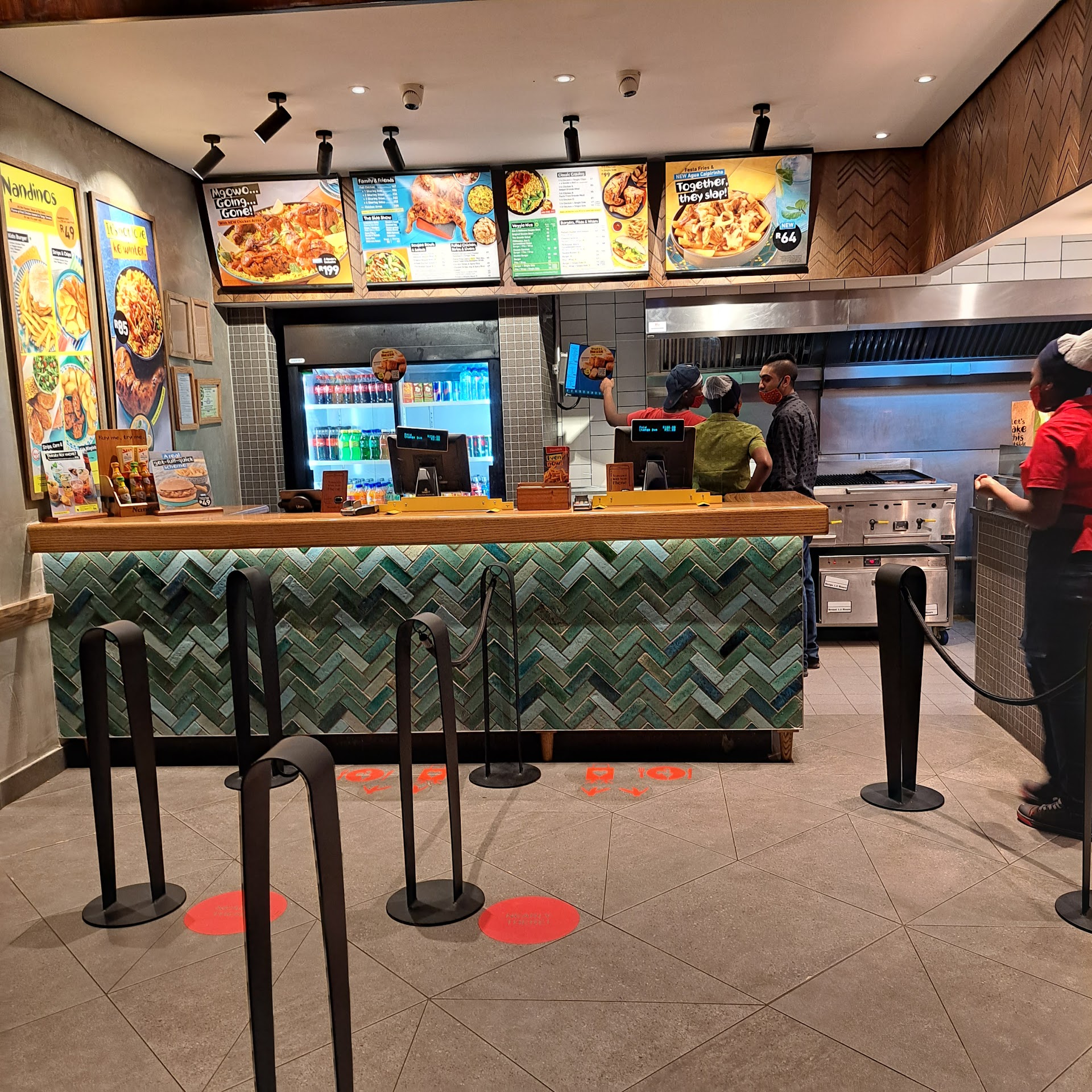 Nando's Gold Reef City is a very nice Food establishment, for single as well as a group meal. Ideal for parties and group events. Meals are easily prepared and the host also assist with the menu if you struggle with decision making. Tea and Hot Chocolate as a heated drink and no other coffees on the menu. Food prepared to your discretion and not a variety of desserts. Tables and venue very clean and well lit. A peaceful and tranquil place for dining with welcoming staff...