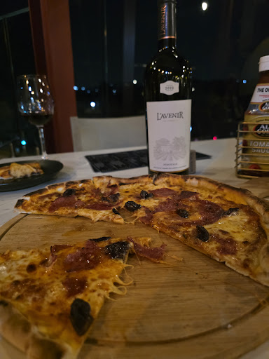 And definitely make reservations on days you'd typically expect a restaurant to be busy. All in all, I think they have 12 tables? It's a small joint. Ambience is great, accentuated by the rooftop views of course. Chilled vibes when there isn't a DJ/live band. You can hear yourself talking, which is good. The service is cool, although honestly, they could work on a few small but important things with their staff like greeting and looking enthusiastic upon arrival, seating guests expeditiously and generally prioritizing customers' comfort and not trying to argue with or railroad them. How can staff tell you that they can't extend the sun shield to protect you from the sun bearing down strongly on you because if the wind breaks it, they'll be held responsible? Then the management should get stronger sun shields. Really ridiculous. Food wise, they only serve pizza and sushi. We ordered 2 different kinds of pizza and enjoyed both. Simple and authentic to the Italian style of pizza making. The sushi ordered by other tables around us also looked good, so thumbs up purely by way of visual appeal!!! So I'd say a 4 on the food itself. But the cocktails are slightly overpriced for the taste. Too watery. Also, a big down was that they do not have enough wine by the...
