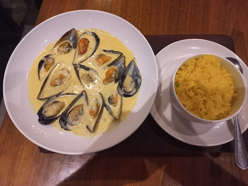 I ordered the Mussels for R209. Served with rice or chips. I took the rice. When it arrived i was sure they are joking. 12 mussels and a small bowl of rice. I refused it as it was like receiving a starter at 3 times the price. The Manager took it away and then i went to ask to take n picture and they said they already deplated it. 10 minutes later the manager brought it back and said i should please eat it as they will take it off the bill.