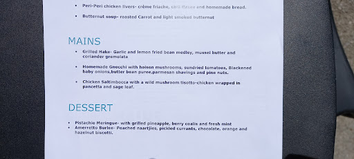 I started with 12 oysters plus a glass of Waterford Rose-Mary wine which was excellent, good service, the waitress brought two roses for me to taste. However, it was all downhill from there. The oysters were from Knysna, they only had 15 left I had 12, ranged from excellent and meaty to creamy. Not consistent in texture or taste, may have not been fresh despite Knysna, the source, being only 100 km away. Further update, they were bad and caused me intense diarrhea when I got back to my hotel room a few hours later. I was placed right next to a busy corridor, despite an empty restaurant, they would not move me as a single person would take up a table meant for 4 even though the restaurant was not at all busy and did not get 100% full for the whole evening I was there. No bread or an offer of bread unless one asks for it. Baguette plus butter given after asking about bread. Butter was in a small dish, brought straight from the refrigerator and so was cold, hard and difficult to spread. Bread was stale. No explanation of the menu which is quite complex. Server was pleasant, but did not know much about the wines or the menu. New glass for a different wine Bonnievale Shiraz 2015 - notes of chocolate and toffee, screwtop bottle, bright and lots of fruit tastes. No tannins. A very enjoyable wine. I then ordered another starter, the Black mushroom with mussels. This was a mussels and mushrooms in a white sauce with cheese on top baked in an oven very strange dish, floating in a thin white sauce with baked cheese on top and a black mushroom in the middles with mussels on the mushroom. Local mussels are a great ingredient, unfortunately this treatment does not do justice to either the mussels or the mushroom used as a base. Could not eat more than a few tastes. This dish is an insult to both the mussels and the mushrooms. A waste of good ingredients. I then proceeded to have the grilled line fish which was Yellowtail. It arrived overcooked with much too much butter and too much salt. In fact every dish I was served was over salted including the steamed vegetables. My last attempt at salvation was the coconut creme caramel. The creme caramel was broken, curdled, lumpy, not smooth and basically scrambled eggs. The caramel sauce was bitter and overcooked, almost burnt. Placed on top were two canned litchis. I could not eat more than a taste. All in all a disastrous meal. I don't understand why this restaurant has 4.5 stars. I give it no more than one star as nothing I had was well prepared or even any care taken to try and present something palatable apart from the wine which they could not screw up. The servers could not answer basic questions like, where the prawns were sourced from, if the kingklip was fresh or frozen and where it was sourced from etcetera, the waitress knew nothing about the wines or the varietals from which they were made. Not...