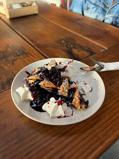 Read moreI can only comment on the frozen Blueberry pie. We went there for cappuccino's and Blueberry pie. But, no pie on the menu :( The waiter did inform us we can purchase a frozen full blueberry pie at the small store. At chalet we baked it in oven from frozen as recommended. Looked amazing. Cut it but it was all liquidy under the crust. Meaning, fresh berries and runny watery underneath. The taste was great but would've like a filling that had more consistancy. (like a reduction or pie filling consistency) Dining there I can not comment since we did not sit down. This review only on the pie :) would be fantastic if they had good pie as dessert on sit...