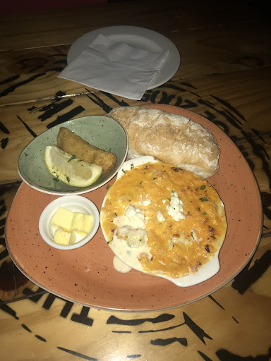 Read moreI attended a group supper on the 29 june 2018. It was packed. We did have to wait about 7min to get seated but that was to be expected as we did not make a reservation. The vibes of the restaurant was so ambient. We ordered a starters plate which came with stuffed olives, chicken livers, calamari and fish cakes. Very tasty. To wash it down, we had the restaurants pineapple pinacolada which was so different yet so yummy. For my main, I had a sword fish with wasabi mash and coconut rice. This was THE BEST MEAL I've ever tasted in a restaurant by far!!!! Absolutely delicate fish infused in a garlic butter sauce. The combinations on my plate with the wasabi mash was such a hit in my books. And who would of thought of coconut rice?!!! Splendid! I would definitely recommend the food here to anyone. Not to mention our waitress was on point with her service. Thank you for an unforgettable experience which was my first time ever trying this restaurant. I will...