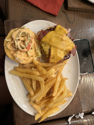 Read moreThe service was great. Our waiter was very friendly and attentive, our food also arrived rather quickly. The steak special is nothing special in my opinion, there wasn’t enough basting. I ordered a medium rare but received a very rare(however this could just be one of those restaurants where medium rare is more rare than at others). The chips could’ve used a little more spice. Their bacon and cheese burger was incredibly delicious though, very juicy and flavourful. The Ribeye was also good, very soft, juicy and nice basting. The atmosphere is in between formal and casual. Not a very noteworthy vibe. Their prices are average for a restaurant of this calibre coming to about R130 pp...