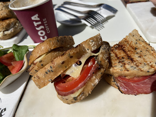 Ā Ā Ā Read moreHidden in a tiny corner we found Costa. No boards for direction from the Parking area. Did a slight detour around Bootleggers way. But we found them. Seats are still only outside BUT apparently inside is currently under revamp and should be good to go in a week or so. They have been open around a month according to staff. Staff are friendly. Pleasant. They lack a bit of confidence to be honest BUT they are trying and happy to Smile. Gratefully accepted some guidance. I am ALL for supporting those that are eager and humble to learn. I will Definitely Support Costa Century City. We sat outside (only seating currently), a bit windy but was worth it. The sandwiches and burger was a winner. See...