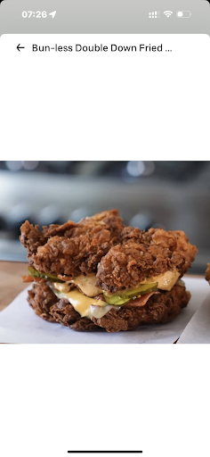 Ā Ā Ā Read moreOrdered from them via uber eats and Iām so disappointed. The first picture is what was advertised and the second picture is what I received, minus the pastrami and pickles. What I received was half the size of the advertised image (bunless burger with chicken as the bun). It looked like they cut the chicken in half and stacked them. The chicken was so hard too. The second picture is supposed to be the āburgerā. Im surprised that a restaurant would serve that and think that a customer would be satisfied...